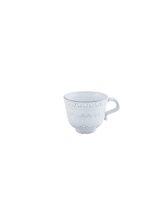 De Bordallo Flora theekop is gemaakt van geglazuurd aardewerk in een witte kleur. Het kopje heeft een diameter van 10,3 cm en een hoogte van 8,6 cm. Gebruik het kopje voor het drinken van thee.