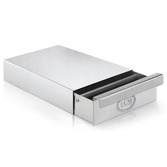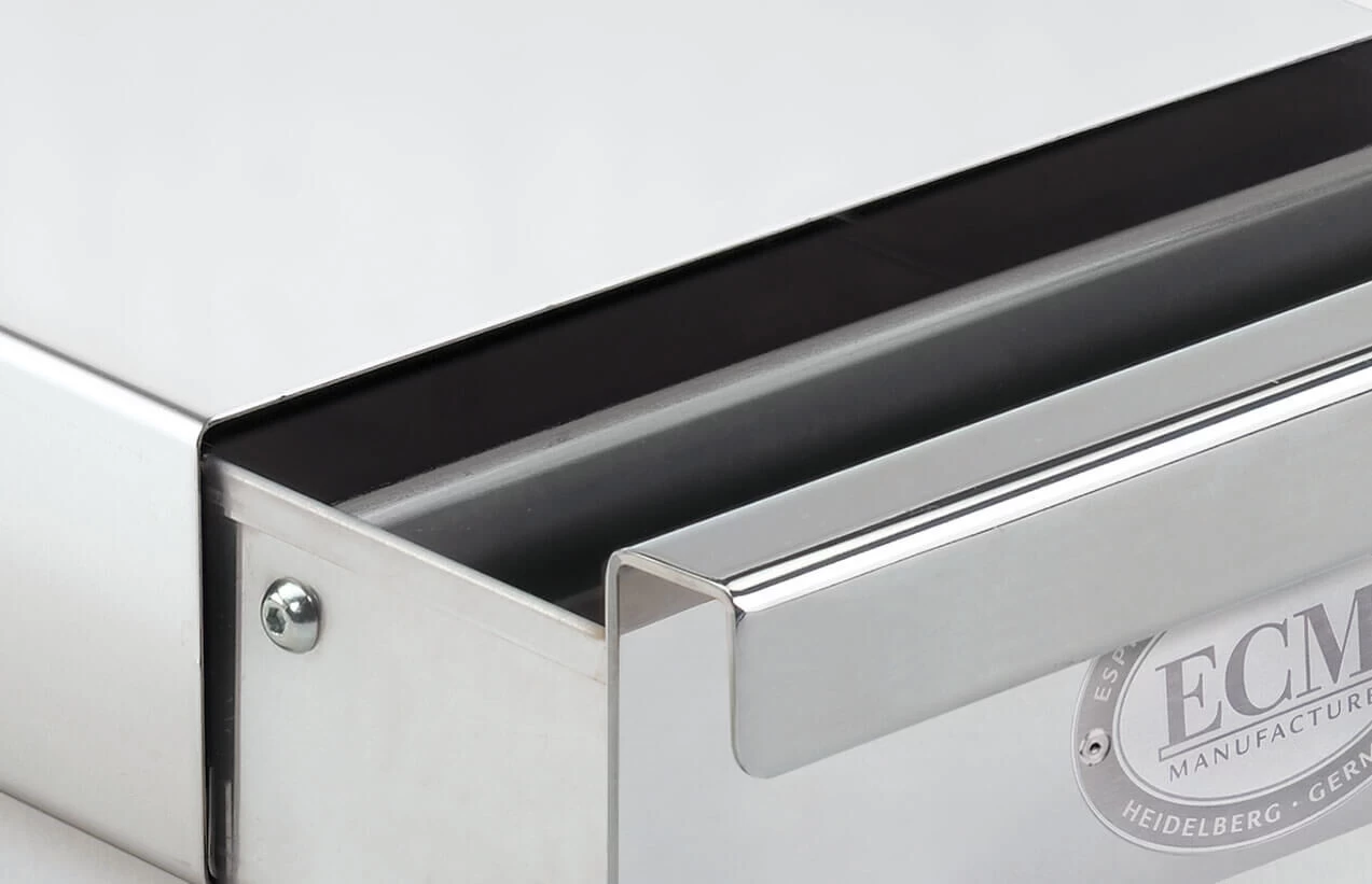 Dankzij de geluidsabsorberende stootrand verwijderd u vrijwel geluidloos de koffie uit de portafilter en de resterende koffie wordt opgevangen in de slanke lade. De uitklopbak is vervaardigd van gepolijst roestvrij staal en gemakkelijk uit te schuiven. De producten van ECM zijn zowel geschikt voor thuis als in een professionele omgeving. De uitklopbak is na gebruik gemakkelijk te reinigen in de vaatwasmachine.