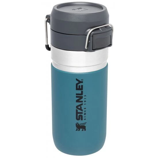 De Lagoon, blauwe, Stanley The Quick Flip Water Bottle is gemaakt van dubbelwandig 18/8 roestvrij staal en heeft een inhoud van 470 ml. De Stanley waterfles heeft een gewicht van 320 gram, een diameter van 7,6 cm en is 20,3 cm hoog. Gebruik voor het meenemen van diverse koude dranken. Koude dranken blijven tot wel 7 uur lang koud, ijs blijft tot wel 30 uur ijskoud. De waterfles is volledig lekvrij en hierdoor veilig in gebruik.